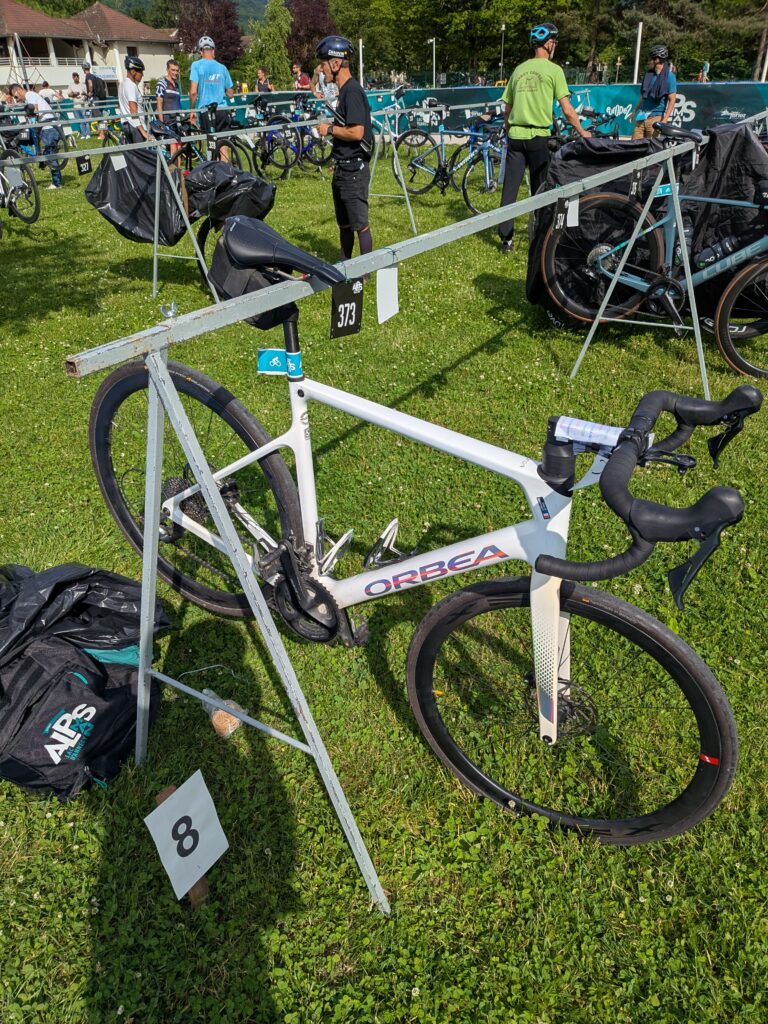L’annonce tombe pendant le briefing, la natation est annulée. A cause de l’orage annoncé toute la nuit et jusqu’à minimum 6h du matin, le lac est déclaré non navigable. On va donc courir 5km au lieu de nager. La déception est grande. Le départ de l’Alpsman est une de ses grandes particularités puisqu’il se fait depuis un bateau. Je sais donc déjà avant de partir que je ne ferais pas un IronMan, que je n’aurais pas ce que je suis venu chercher. Je sais qu’ils n’ont pas le choix et que c’est la meilleur chose à faire. Comme à Nice, je comprends que garder l’épreuve malgré la préfecture qui demandait l’annulation, c’est déjà beaucoup. Voilà donc, pas de nage, mais le parcours vélo, déjà compliqué, va le devenir encore plus. L’organisation ne pouvant pas garantir la sécurité des vélos pendant la nuit au vue des conditions annoncées, nous demande de les récupérer pour revenir avec le lendemain matin.